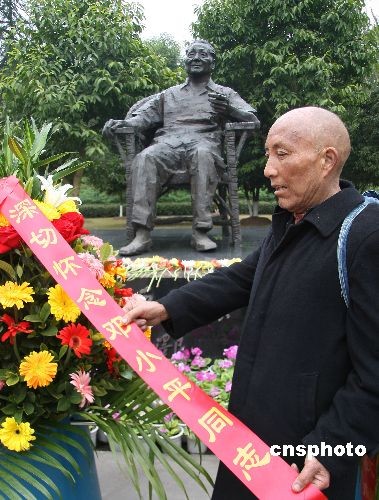 2月19日,廣安區(qū)協(xié)興鎮(zhèn)牌坊村村民在為小平銅像獻花以示懷念。當(dāng)日,是世紀(jì)偉人鄧小平逝世12周年紀(jì)念日,四川省廣安市和來自全國各地的各界人士紛紛自發(fā)前來為鄧小平銅像獻花以示深切懷念。中新社發(fā) 杜修戰(zhàn) 攝