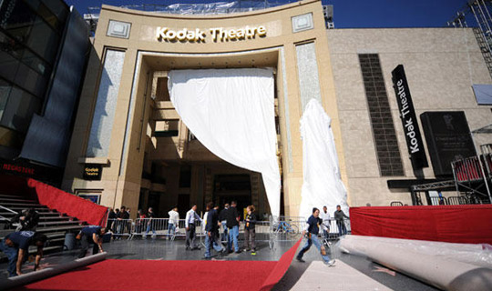 2月18日,在美國好萊塢柯達(dá)劇院,工人們正在門前鋪設(shè)紅地毯,準(zhǔn)備迎接奧斯卡的頒獎典禮。第81屆奧斯卡獎頒獎典禮將于22日在柯達(dá)劇院舉行,將會有眾多明星走過這條“星光大道”。