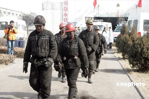 二月二十二日凌晨二時十七分,山西焦煤集團(tuán)西山煤電屯蘭煤礦發(fā)生瓦斯爆炸事故,目前已造成四十四人遇難。圖為已安全升井的礦工。中新社發(fā) 張云 攝