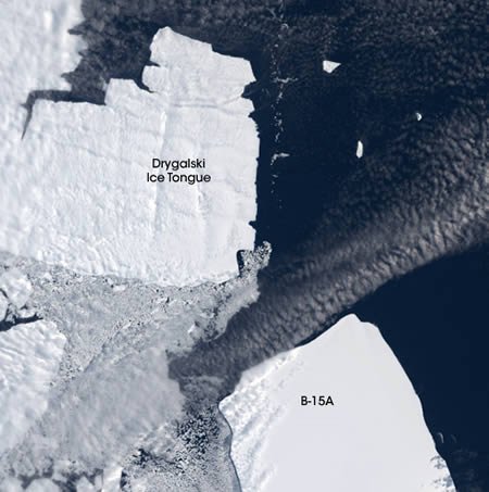 冰川相近運(yùn)動(dòng)圖:本圖攝于2005年1月21日,顯示的是兩大冰塊接近的過(guò)程。