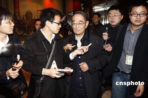 全國“兩會”即將開幕,代表、委員們3月2日陸續(xù)抵京報(bào)到。圖為民盟中央原名譽(yù)副主席、北京大學(xué)光華管理學(xué)院名譽(yù)院長厲以寧在北京駐地報(bào)到時(shí)遭遇記者“圍攻”采訪。中新社發(fā) 盛佳鵬 攝