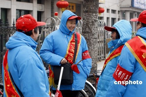 3月3日,全國政協(xié)十一屆二次會議在北京人民大會堂開幕,北京公交車站工作人員統(tǒng)一著裝,以陽光的微笑來服務到京旅游的乘客和出行的市民。中新社發(fā) 鄭雄增 攝