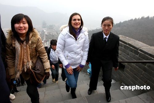 圖:撐桿跳女皇伊辛巴耶娃游覽中國長城(4)——中新網(wǎng)