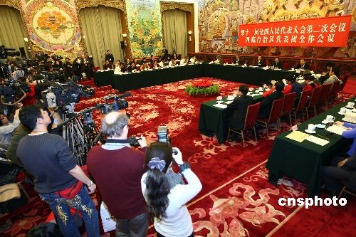 圖:中外記者高度關(guān)注西藏代表團(tuán)