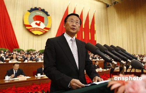 3月7日,全國(guó)政協(xié)十一屆二次會(huì)議在北京人民大會(huì)堂舉行第二次全體會(huì)議,全國(guó)政協(xié)常委、香港九龍倉(cāng)集團(tuán)主席吳光正作《應(yīng)對(duì)金融海嘯 擴(kuò)大內(nèi)需 展開改革開放“第二浪”》的發(fā)言。吳光正表示,全球金融海嘯帶來(lái)了“!,也帶來(lái)了“機(jī)”,中國(guó)要借“機(jī)”積極推動(dòng)改革開放的“第二浪”。中新社發(fā) 盛佳鵬 攝