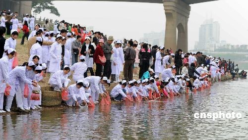 圖:南寧女性慶“三八”放生百萬魚苗——中新網(wǎng)