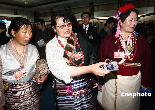 圖:藏族女代表在京參觀西藏民主改革50年展——中新網(wǎng)