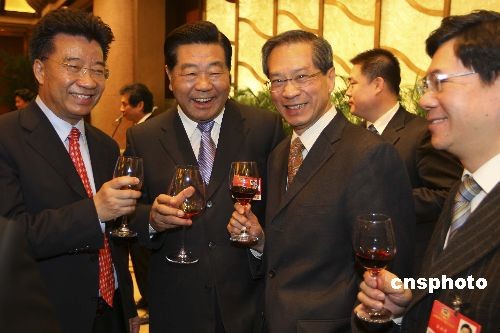 圖:賈慶林向港澳地區(qū)全國(guó)政協(xié)委員敬酒——中新網(wǎng)