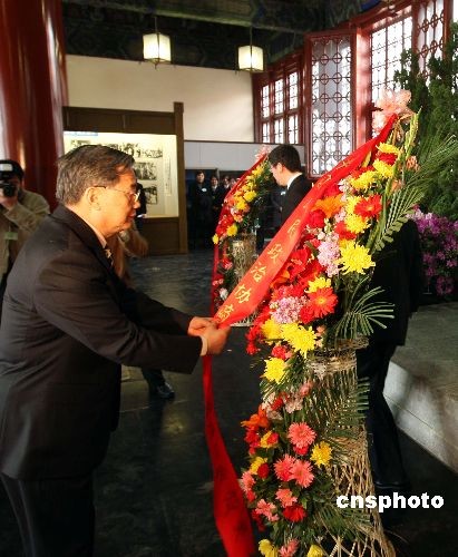 全國人大常委會(huì)副委員長(zhǎng)、民革中央主席周鐵農(nóng)代表民革中央向?qū)O中山先生像敬獻(xiàn)花籃。