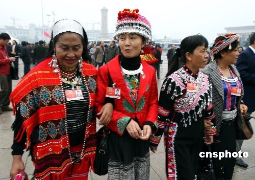 圖:少數(shù)民族委員盛裝步入大會(huì)堂(2)——中新網(wǎng)