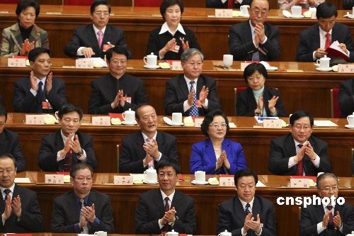 3月13日,第十一屆全國人民代表大會(huì)第二次會(huì)議在北京人民大會(huì)堂舉行閉幕會(huì),全國人大代表鼓掌慶祝通過各項(xiàng)決議。中新社發(fā) 盛佳鵬 攝