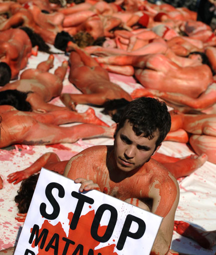 圖:動(dòng)物保護(hù)組織成員裸身抗議捕獵海豹(2)