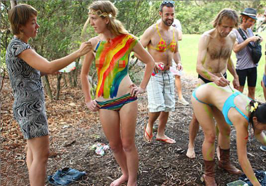 圖:彩繪、樹皮遮體蹬車 裸體自行車賽呼吁環(huán)保(3)——中新網(wǎng)