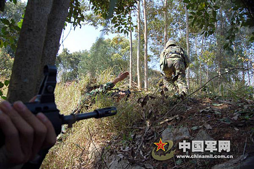 連日來(lái),南京軍區(qū)某團(tuán)“青州連”充分貫徹新大綱的新思想、新規(guī)定,堅(jiān)持從難從嚴(yán)從實(shí)戰(zhàn)出發(fā)摔打部隊(duì),全連官兵戰(zhàn)術(shù)觀念樹(shù)得牢,戰(zhàn)場(chǎng)觀念強(qiáng)。訓(xùn)練中,他們積極探索野外條件下作戰(zhàn)新方法,他們還特意選擇野外近似實(shí)戰(zhàn)的地形環(huán)境,從嚴(yán)摔打和錘煉官兵的快速反應(yīng)能力,從而促進(jìn)了訓(xùn)練質(zhì)量和效益的提高。圖為該連3月15日該團(tuán)組織官兵進(jìn)行野外課目訓(xùn)練的場(chǎng)景。