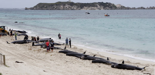 圖:大批虎鯨和海豚在澳大利亞海灘擱淺