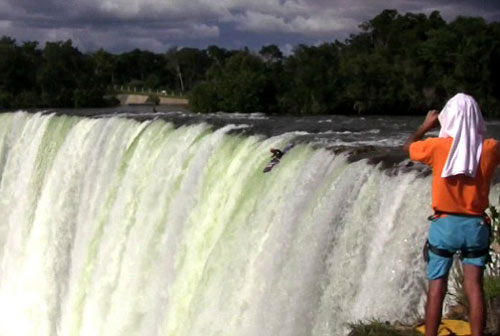中新網3月24日電 據英國媒體23日報道,一位名叫佩德羅-奧麗維亞的巴西小伙,日前乘坐皮劃艇從落差達38.7米(127英尺)的賽爾托-貝洛(Salto Belo)瀑布“俯沖”了下來。整個墜落過程歷時2.95秒,在最后時刻,奧麗維亞的頭部以每小時70英里的速度撞向翻騰的水面。但他不僅大難不死,而且還如愿以償?shù)拇蚱屏嗽瓉?08英尺的“墜瀑布”世界紀錄。