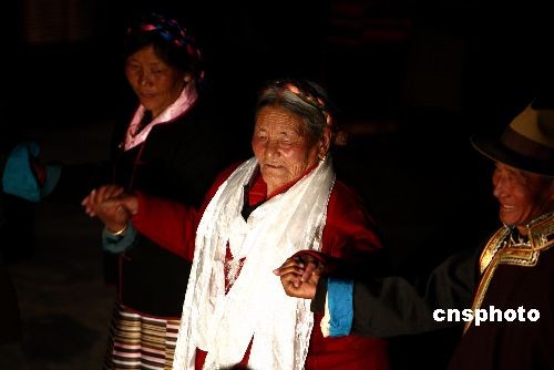 3月23日晚,西藏山南地區(qū)結(jié)巴鄉(xiāng)結(jié)巴村的村民自發(fā)組織篝火晚會,喜迎西藏百萬農(nóng)奴解放日。結(jié)巴鄉(xiāng)是西藏第一個(gè)“朗生互助組”的誕生地。西藏實(shí)行民主改革后,廣大農(nóng)奴獲得了解放,自己當(dāng)家做主,并擁有了土地。圖為83歲高齡的次仁拉姆(左)表示:百萬農(nóng)奴解放紀(jì)念日是山南地區(qū)農(nóng)民最吉祥和最幸福的一天。1959年西藏山南地區(qū)實(shí)行民主改革以后,結(jié)巴村被解放的農(nóng)奴和朗生們自主地組織成立了第一個(gè)“朗生互助組”,而當(dāng)年倡議成立互助組并任組長的就是次仁拉姆。中新社發(fā) 杜洋 攝