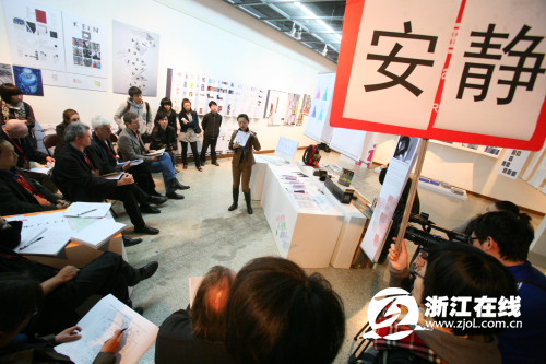 這是今天下午在中國(guó)美院美術(shù)館中德碩士CDK項(xiàng)目的答辯會(huì),參加答辯的碩士由中國(guó)美院和柏林藝術(shù)大學(xué)合作培養(yǎng)。用網(wǎng)絡(luò)的話(huà)說(shuō),這是一個(gè)很開(kāi)放而且酷斃了的畢業(yè)答辯會(huì),堪稱(chēng)中國(guó)史上最牛。作品也很有意思,比如說(shuō)“美院象山校區(qū)導(dǎo)向標(biāo)志設(shè)計(jì)”,“杭州地鐵標(biāo)識(shí)設(shè)計(jì)”……大多設(shè)計(jì)和我們生活息息相關(guān),甚至和杭州這個(gè)城市很合拍,看了展覽你可能對(duì)現(xiàn)有的一些城市細(xì)節(jié)不滿(mǎn)。