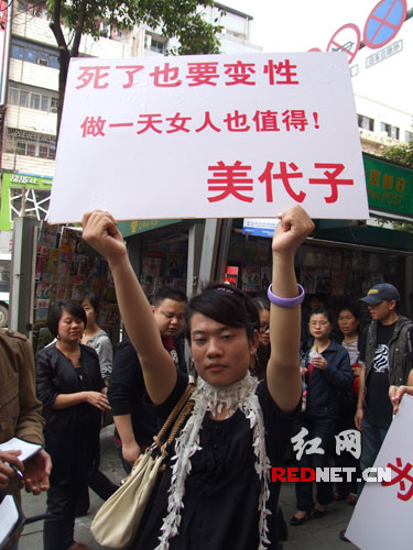 前不久申清清在接受記者采訪時(shí)曾經(jīng)表示,曾在江西舉過(guò)關(guān)于變性的牌子,并且在江西有醫(yī)院愿幫助他完成手術(shù),但具體事宜仍未敲定。既然馬上要做手術(shù)了,為何還要“故技重施”呢?申清清說(shuō),此次再來(lái)長(zhǎng)沙舉牌,一方面希望通過(guò)“現(xiàn)身表演”,呼吁社會(huì)能夠容忍并接受變性人的存在,另一方面,希望能有更多的醫(yī)院能夠關(guān)注他和美代子,并能夠真切地表態(tài),可以幫助他們實(shí)現(xiàn)“女人夢(mèng)”。
