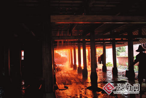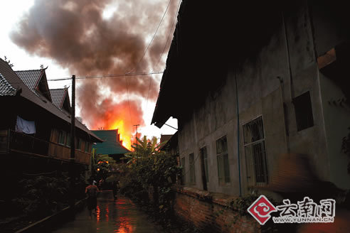 與此同時(shí),發(fā)現(xiàn)房屋起火的村民也跑到村寨辦公室,用高音喇叭通知村民趕來(lái)救火。等玉溫接到兒媳電話趕回來(lái)時(shí),大火已經(jīng)燒得通紅,現(xiàn)場(chǎng)趕來(lái)的數(shù)十名村民已經(jīng)開(kāi)始用臉盆和水桶接水救火了。隨后趕來(lái)的公安民警、以及從遠(yuǎn)處的曼春滿(mǎn)、曼聽(tīng)等村寨趕來(lái)的村民也紛紛加入到了救火隊(duì)伍中。