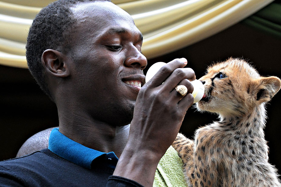 周一(2日),牙買加“飛人”博爾特在肯尼亞野生動(dòng)物中心收養(yǎng)了一只3個(gè)月大的小獵豹,并給其取名為“閃電博爾特”。來源:中國新聞網(wǎng)