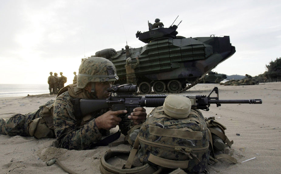 周三(4日),美軍和韓軍在韓國浦項舉行聯(lián)合登陸演習(xí)。來源:中國新聞網(wǎng)