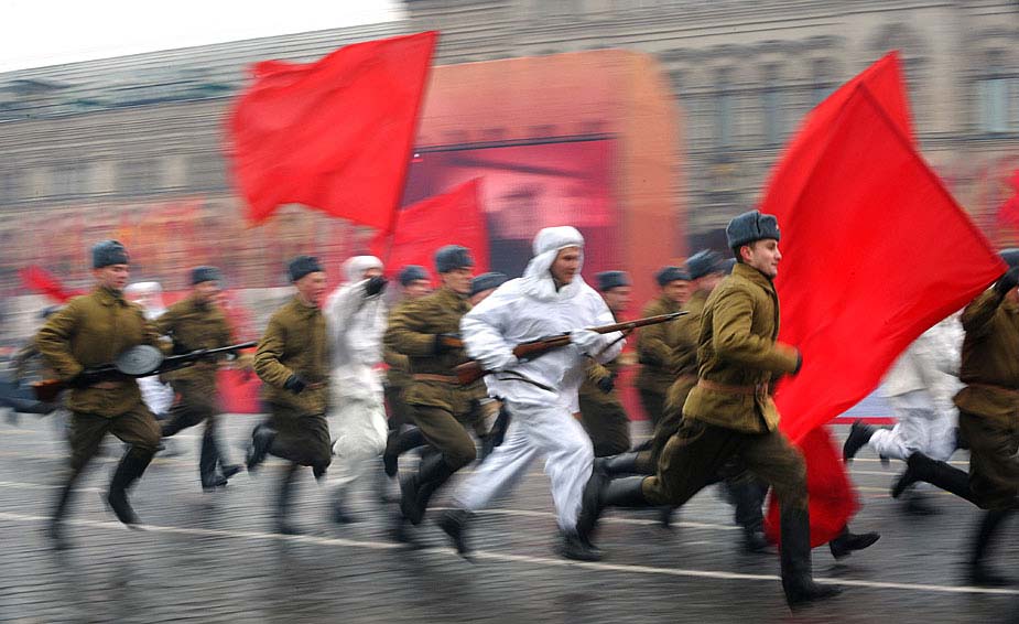 周六(7日),俄羅斯士兵身穿二戰(zhàn)時期的軍服在莫斯科紅場舉行閱兵閱兵式紀(jì)念1941年紅場閱兵。來源:中國新聞網(wǎng)