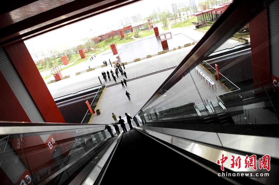 4月27日,從上海世博園中國館滾梯上俯瞰園區(qū)。中新社發(fā) 廖攀 攝