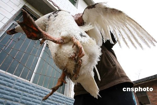 2009年3月10日,在四川省綿陽市游仙區(qū)忠興鎮(zhèn)涌泉村一社張?jiān)茲杉遗臄z的一只長(zhǎng)了四只腳的鴨子。這只鴨子除了長(zhǎng)有兩只正常的腳之外,在兩只正常腳的根部分別多長(zhǎng)出了兩只腳狀的肢體。其特征和正常的鴨腳差不多,腳蹼腳趾俱全,只是看去稍顯小些。走路時(shí),兩只腳好像抱在屁股上不能活動(dòng)。 中新社發(fā) 蒲滔 攝