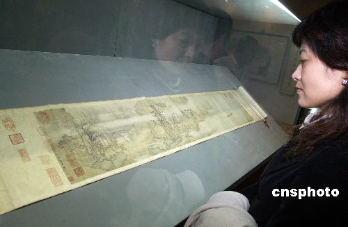 11月6日晚,中國嘉德2007秋季拍賣會(huì)的國寶級(jí)拍品明代仇英《赤壁圖》,最終以7952萬元人民幣(含傭金)的天價(jià)成交,創(chuàng)下中國繪畫作品(包括所有中國書畫和油畫作品)拍賣的世界紀(jì)錄。據(jù)悉,該作品由中國內(nèi)地買家競(jìng)得。此幅作品受到藏家的極大關(guān)注,拍賣現(xiàn)場(chǎng)氣氛非常熱烈,拍賣師報(bào)出4000萬元人民幣的起價(jià)后,隨即就有買家舉牌應(yīng)價(jià)。此后,現(xiàn)場(chǎng)買家與委托席叫價(jià)此起彼伏,競(jìng)價(jià)不斷飆升,爭(zhēng)奪趨于白熱化,最終以7100萬元人民幣的價(jià)格落槌。中新社發(fā) 張煒 攝