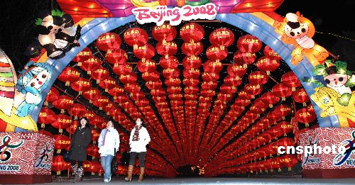 2月8日晚,眾多市民和游人紛紛來到大連勞動公園欣賞奧運主題的彩燈。以“輝煌奧運”為主題的2008迎春游園燈會2月7日至2月24日在大連勞動公園舉行。本屆迎春游園燈會由“喜迎奧運”、“祖國繁榮”、“浪漫大連”、“金鼠送!、“童話故事”5個系列組織50余盞大型燈組組成。除設(shè)燈飾展區(qū)外,還設(shè)有民俗表演區(qū)、南北風味小吃區(qū)、游藝游樂區(qū)、民間技藝展示區(qū)和地面焰火表演區(qū)。中新社發(fā) 劉德斌 攝