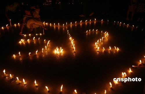 5月19日晚,漢口江灘燭光閃耀,國(guó)歌嘹亮,上萬武漢市民自發(fā)來到江灘為在5.12地震中罹難的同胞默哀。