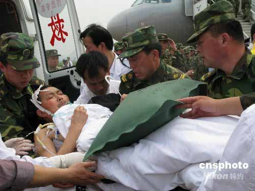 圖:災(zāi)區(qū)傷員乘專(zhuān)機(jī)飛抵柳州接受治療