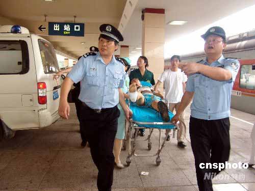 5月24日,從四川德陽(yáng)開往長(zhǎng)沙的救15/4次列車抵達(dá)長(zhǎng)沙火車站。此趟列車共有238名來自四川地震災(zāi)區(qū)傷員來長(zhǎng)沙接受救治,傷員分別來自北川、安縣、汶川、德陽(yáng)等地,與其同行的還有67名醫(yī)務(wù)人員和239名陪護(hù)人員。在長(zhǎng)沙鐵路公安、武警官兵和醫(yī)務(wù)人員的幫助下,所有傷員分乘130臺(tái)救護(hù)車迅速被轉(zhuǎn)移到指定的中南大學(xué)湘雅醫(yī)院、湘雅二醫(yī)院、湘雅三醫(yī)院、省人民醫(yī)院、長(zhǎng)沙中心醫(yī)院等收治醫(yī)院。中新社發(fā) 郭國(guó)權(quán) 攝