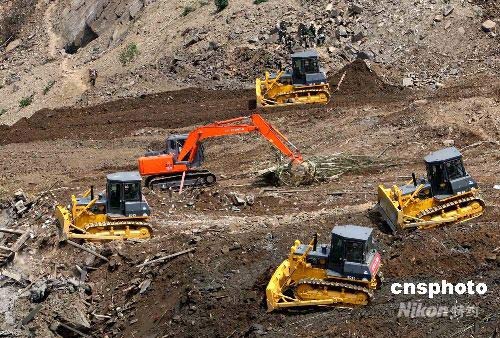 圖:大型機(jī)械在唐家山堰塞湖排險