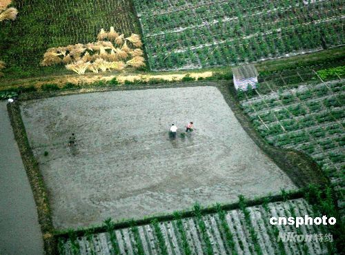 五月下旬, “天府之國(guó)”四川成都正值搶收小麥油菜和搶種水稻的關(guān)鍵時(shí)刻,受災(zāi)農(nóng)民一邊防震一邊辛勤勞作。中新社發(fā) 賈國(guó)榮 攝