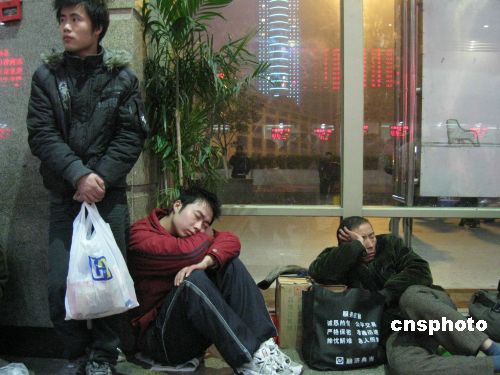運輸部門近日表示,2009年春運將從一月十一日開始至二月十九日結(jié)束。據(jù)預(yù)測,在40天里浙江省將有近1.946億的旅客通過各種交通方式出行。受金融危機的影響,目前已經(jīng)無工可做的打工者選擇了提前返鄉(xiāng),以致浙江發(fā)往湘、鄂、黔、贛等地的車次出現(xiàn)“一票難求”的現(xiàn)象。中新社發(fā) 孫寧亞 攝