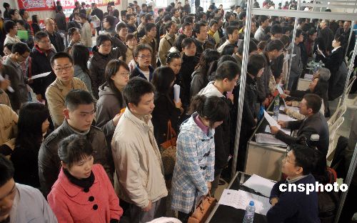 1月17日,福建省2009年春季大中專畢業(yè)生供需見面、雙向選擇大會在福州金山展覽城舉行。本次大會吸引了550多家用人單位前來招聘,為求職者提供近兩萬多個就業(yè)崗位,幾萬名大中專畢業(yè)生前來應(yīng)聘。大會為公益性活動,對參會單位和求職人員均實行免費(fèi),參會的對象包括各設(shè)區(qū)市人事局,省直和中央在閩單位,各類企事業(yè)單位,各類人才中介機(jī)構(gòu),2009年大中專畢業(yè)生、畢業(yè)研究生及往屆待就業(yè)畢業(yè)生。中新社發(fā) 張 斌 攝