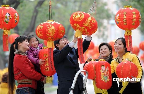 2月8日下午,安徽合肥市瑤海區(qū)綠苑社居委組織轄區(qū)居民齊聚一堂,共慶佳節(jié)。家家戶戶自發(fā)地送出了寫(xiě)有節(jié)日祝福語(yǔ)的元宵燈籠掛在社區(qū)里,多才多藝的社區(qū)群眾還拿出了自己的拿手文藝節(jié)目,共同上演了一臺(tái)精彩的社區(qū)元宵喜樂(lè)會(huì)。中新社發(fā) 解琛 攝