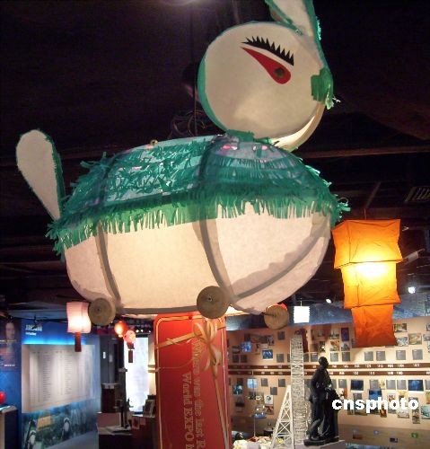 2月10日,上海世博會(huì)展示中心內(nèi),澳門館“玉兔宮燈”安放在“中國(guó)館”旁,世博會(huì)期間,“玉兔宮燈”和“中國(guó)館”將共迎八方來(lái)賓。中新社發(fā) 井韋 攝