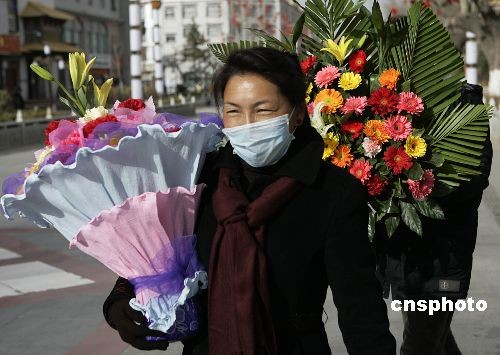 2月24日,適逢藏歷年三十,大批西藏拉薩市民手捧花束花籃趕往大昭寺獻花,祈求來年吉祥如意。中新社發(fā) 劉震 攝