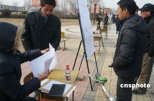 3月2日,北京市房山區(qū)舉行2009農(nóng)村鄉(xiāng)鎮(zhèn)企業(yè)人才招聘會(huì),是次招聘會(huì)以京郊鄉(xiāng)鎮(zhèn)企業(yè)為主面向農(nóng)村招聘相應(yīng)人才,參加招聘項(xiàng)目有農(nóng)業(yè)生態(tài)科技管理、技師技工、商場(chǎng)銷(xiāo)售、家政服務(wù)、現(xiàn)代園林管理、工貿(mào)公司以及個(gè)體經(jīng)營(yíng)企業(yè),對(duì)個(gè)人求職者現(xiàn)場(chǎng)面試,同時(shí)招聘會(huì)還設(shè)立了勞務(wù)招工咨詢(xún)處為應(yīng)聘者解答招聘事項(xiàng)。中新社發(fā) 錢(qián)興強(qiáng) 攝