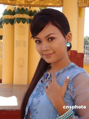 應(yīng)東盟十國有關(guān)方面的邀請,中國廣西衛(wèi)視2009年初開始在東盟十國“尋找金花”(金花意為擁有“金子般心靈,花一樣容貌的女子”),廣西衛(wèi)視將其作為當?shù)芈糜涡蜗笫拐,即將在電視上向觀眾推介緬甸特色旅游。中新社發(fā) 凌金霞 攝