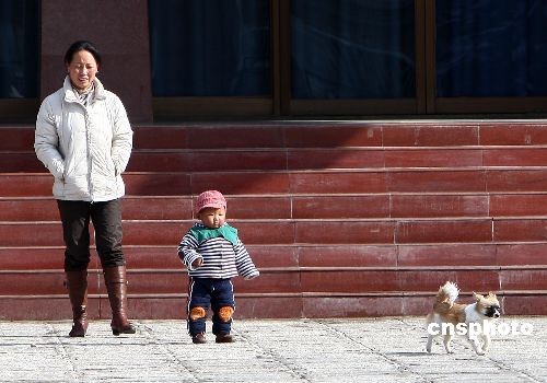 3月20日,一位媽媽帶著孩子在雪后的拉薩街頭沐浴陽光,當(dāng)日是春分,春分意味著春天真正來到了大家身邊。但由于特殊的地理位置,拉薩真正進入春天,還要等20多天。中新社發(fā) 杜洋 攝
