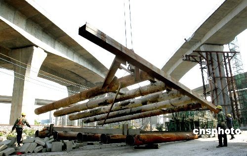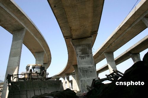 三月二十三日,福州市最大的高速公路互通立交橋——馬尾樞紐互通主體工程六十八座墩身和承臺已全面完成,將力爭在年底竣工。馬尾樞紐互通將興建四條高位匝道,匝道橋總長二千九百多米,位于沈海高速公路馬尾段,是福州機場高速公路二期工程的起點,通過青洲大橋與機場高速公路一期相連接,形成國際機場快速通道。中新社發(fā) 楊婀娜 攝