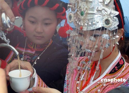 3月27日農(nóng)歷三月初三,是畬族的傳統(tǒng)節(jié)日“三月三”,又稱“烏飯節(jié)”。迄今已有近四百多年歷史的福建寧德市蕉城區(qū)金涵畬族鄉(xiāng)上金貝村舉辦了隆重的“三月三歌會”,吸引眾多當?shù)禺屆窈瓦h近游客前來踏青賞“歌”。 圖為畬族女子獨特的“鳳凰裝”和“鳳凰發(fā)式”,造型美觀,色彩斑斕,是歌會上一道特別亮麗的風景。中新社發(fā) 徐釗 攝
