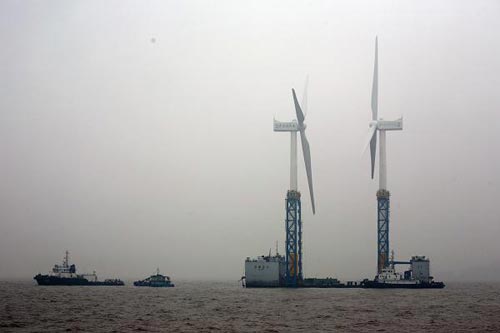 人民網(wǎng)上海4月5日電 昨晚,國家海上風(fēng)電示范項(xiàng)目、上海市重大工程——東海大橋100兆瓦海上風(fēng)電場的第二、第三臺風(fēng)機(jī),在上海洋山港海事處的護(hù)航和監(jiān)控下,經(jīng)過38海里的海上航行,被一次性運(yùn)抵吊裝作業(yè)地點(diǎn)。