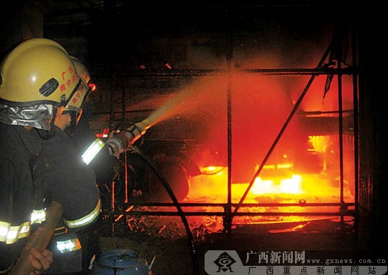 4月16日晚8時許,在南寧市仙葫開發(fā)區(qū)東方外國語學院的工地上,一輛灌漿車不明起火,引燃了油箱。經消防隊員一個多小時的撲救,大火在當晚9時30分才被完全撲滅。