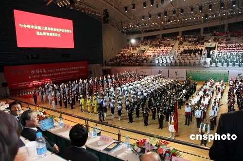 5月2日晚,在國內(nèi)外眾多管樂隊(duì)共同吹響的歡樂頌中,世博號角——2009上海之春國際音樂節(jié)管樂藝術(shù)節(jié)暨“中華杯”中國第三屆非職業(yè)優(yōu)秀行進(jìn)管樂團(tuán)展演圓滿閉幕。在藝術(shù)節(jié)期間還舉行了行進(jìn)管樂論壇,與會(huì)嘉賓就促進(jìn)全世界行進(jìn)管樂團(tuán)的發(fā)展舉行了會(huì)談。中新社發(fā) 黃寧 攝