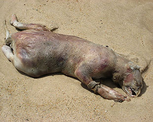 很多人至今還記得,2008年7月曾有人在長(zhǎng)島北?烁浇l(fā)現(xiàn)“怪獸”的尸體,當(dāng)時(shí)世界各大媒體均對(duì)此進(jìn)行了報(bào)道。對(duì)于“怪獸”身份的猜測(cè)可謂五花八門(mén):一種沒(méi)有殼的海龜、浣熊、狗、羊……甚至有人猜測(cè)這是從實(shí)驗(yàn)室跑出來(lái)的試驗(yàn)品。因?yàn)檫@里距離美國(guó)梅島動(dòng)物疾病中心不遠(yuǎn)。